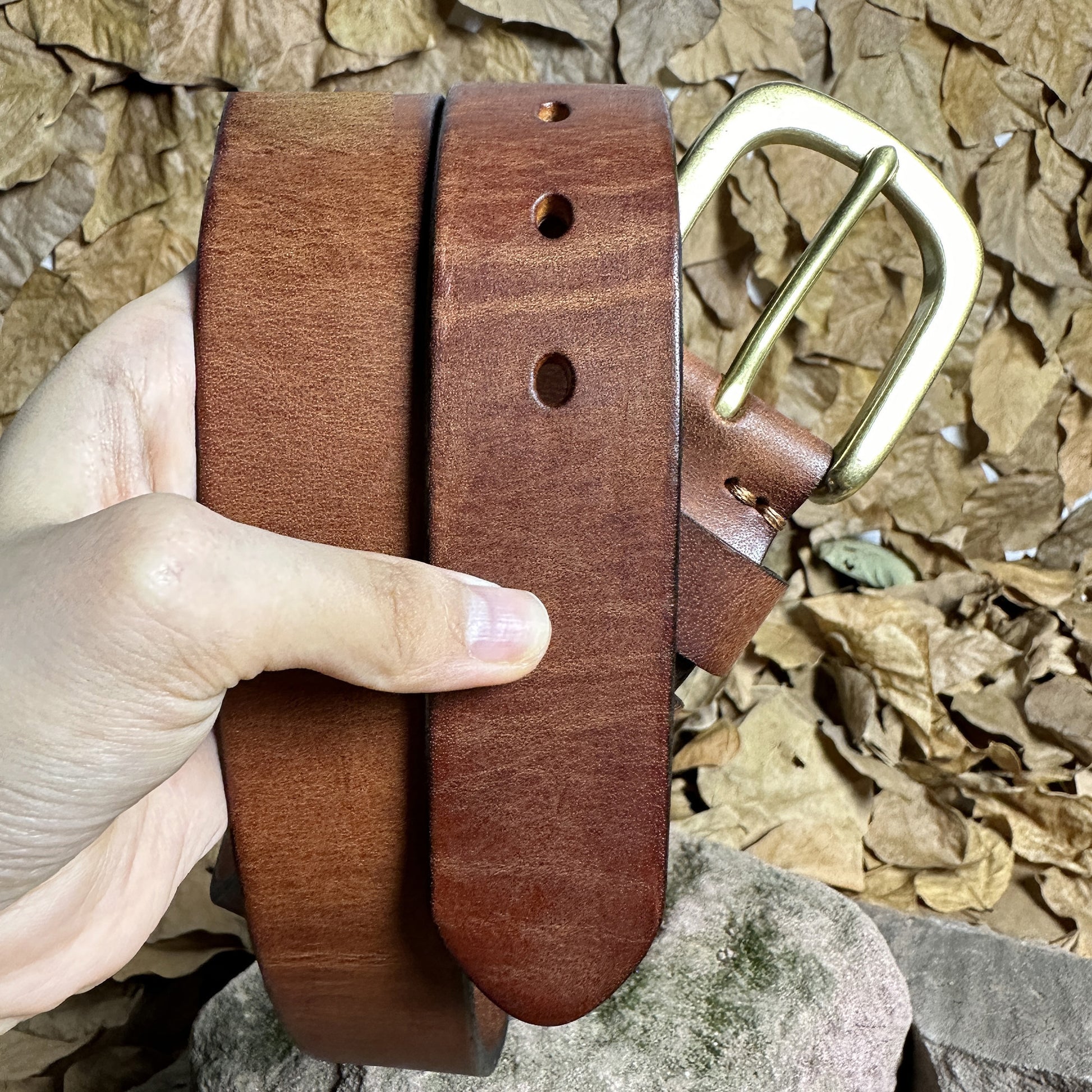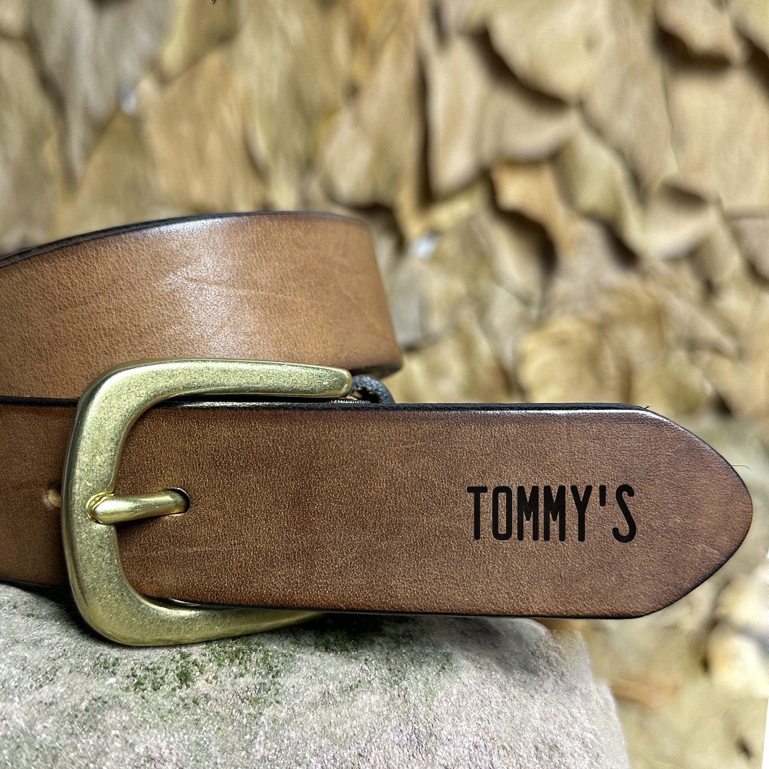 Handmade Personalized Vintage Leather Belt - Full Grain Cowhide with Custom Engraving